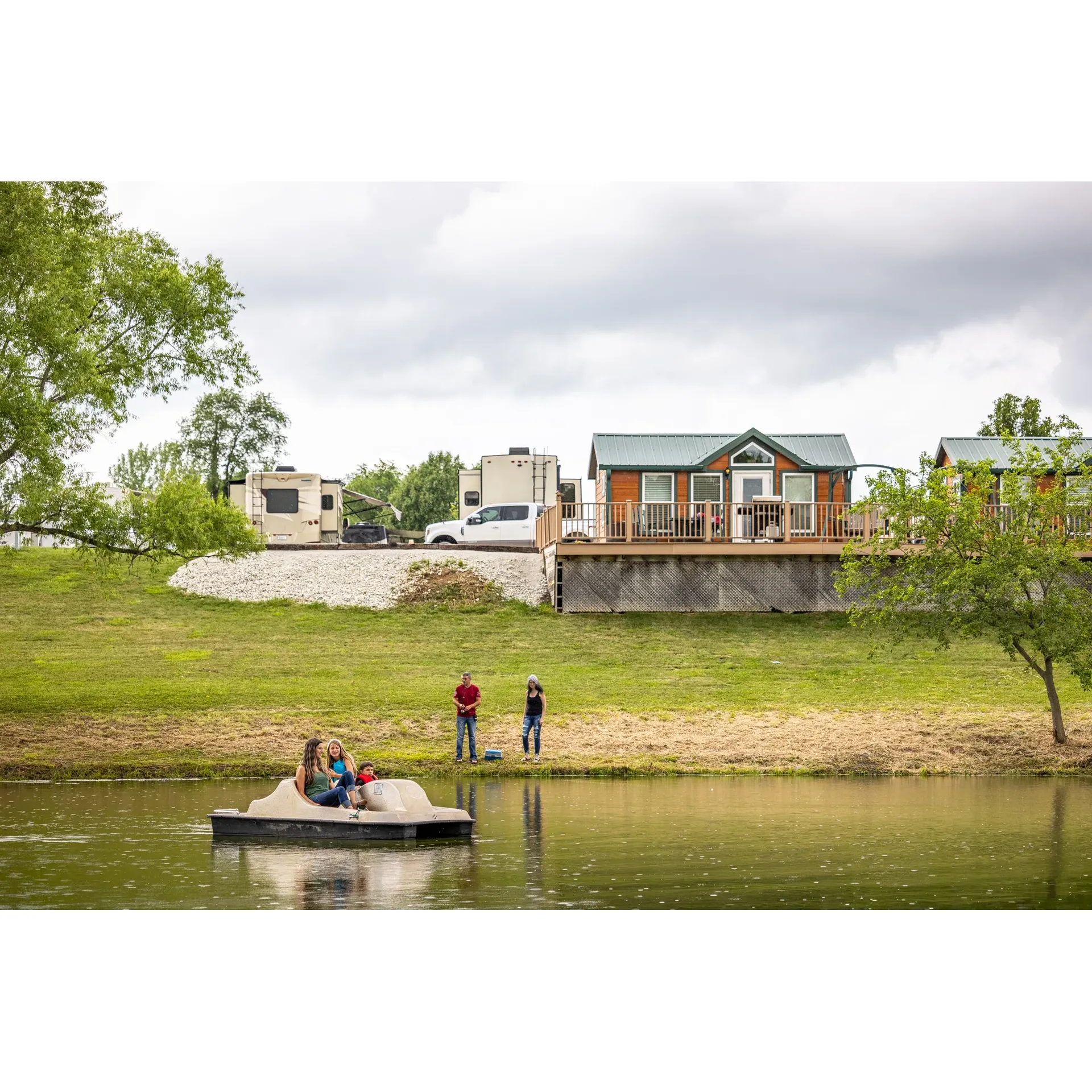 Whether passing through or seeking a restful stay, guests will find solace in the idyllic settings of the cabins, which boast views overlooking a scenic pond, offering a slice of tranquility and an escape from the noise of everyday life. The meticulous care evidences itself in the cleanliness and manicured appearance of the sites and lush grass, creating an environment where guests can relax and reconnect with nature.