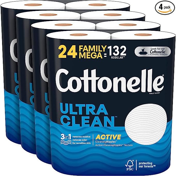 Get the best in clean and comfort with Cottonelle Ultra Clean Toilet Paper. With its unique CleaningRipples texture, this toilet tissue removes residue that can cause irritation, leaving you feeling fresh and clean every time you use it. Not only does it remove odor-causing bacteria, but it is also designed for sensitive skin, making it the perfect choice for the whole family.