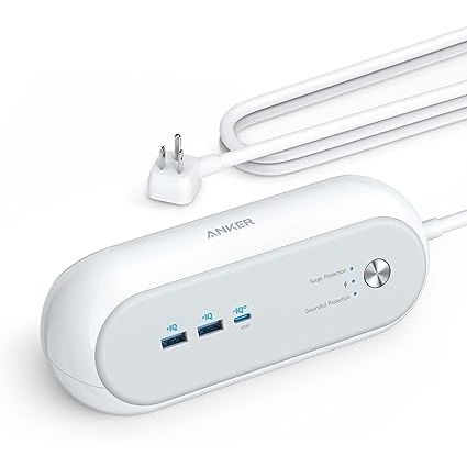 Anker Power Station for Desktop Devices with USB C, 623 Capsule Strip featuring a 45W USB C Charger, 3 Outlet Sockets, 15W 2 USB Ports, 6ft Long Power Cable, Fast Charging for Computers, Tablets, iPhone 13/12.