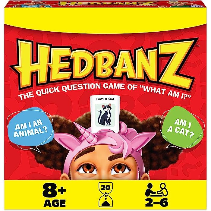 Hedbanz Picture Guessing Board Game - New Edition, suitable for ages 8 and above, in a variety of colors, from Spin Master Games.