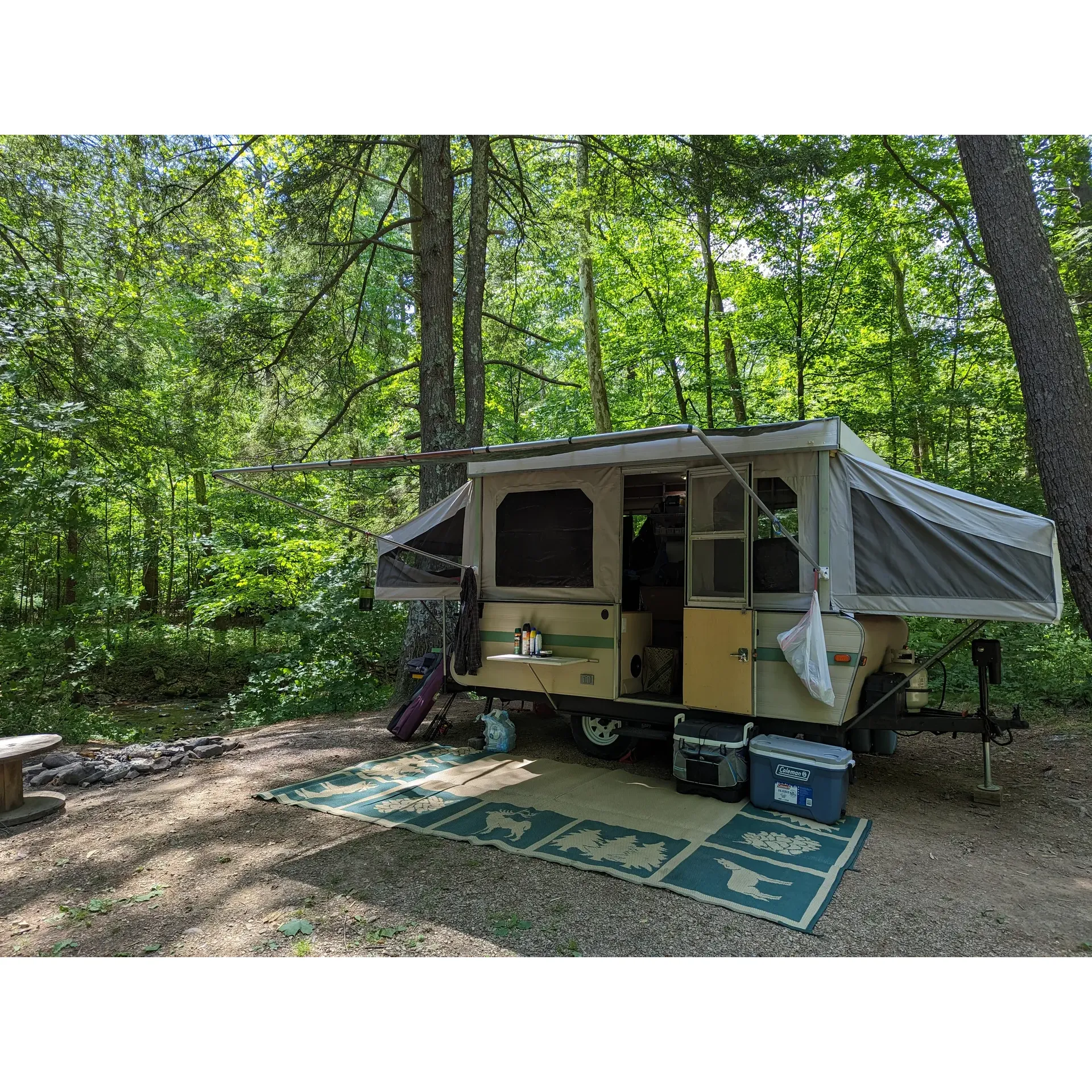 The ample distance between the campsites, separated by natural foliage, ensures semi-privacy, giving campers their own slice of the woodland to relish. An added benefit is that the grounds are accessible via a paved road, making it hassle-free for travelers wishing to explore this lovely destination with ease. A small fee is efficiently managed through a drop box system, so campers are encouraged to come prepared with cash to secure their spot upon arrival.