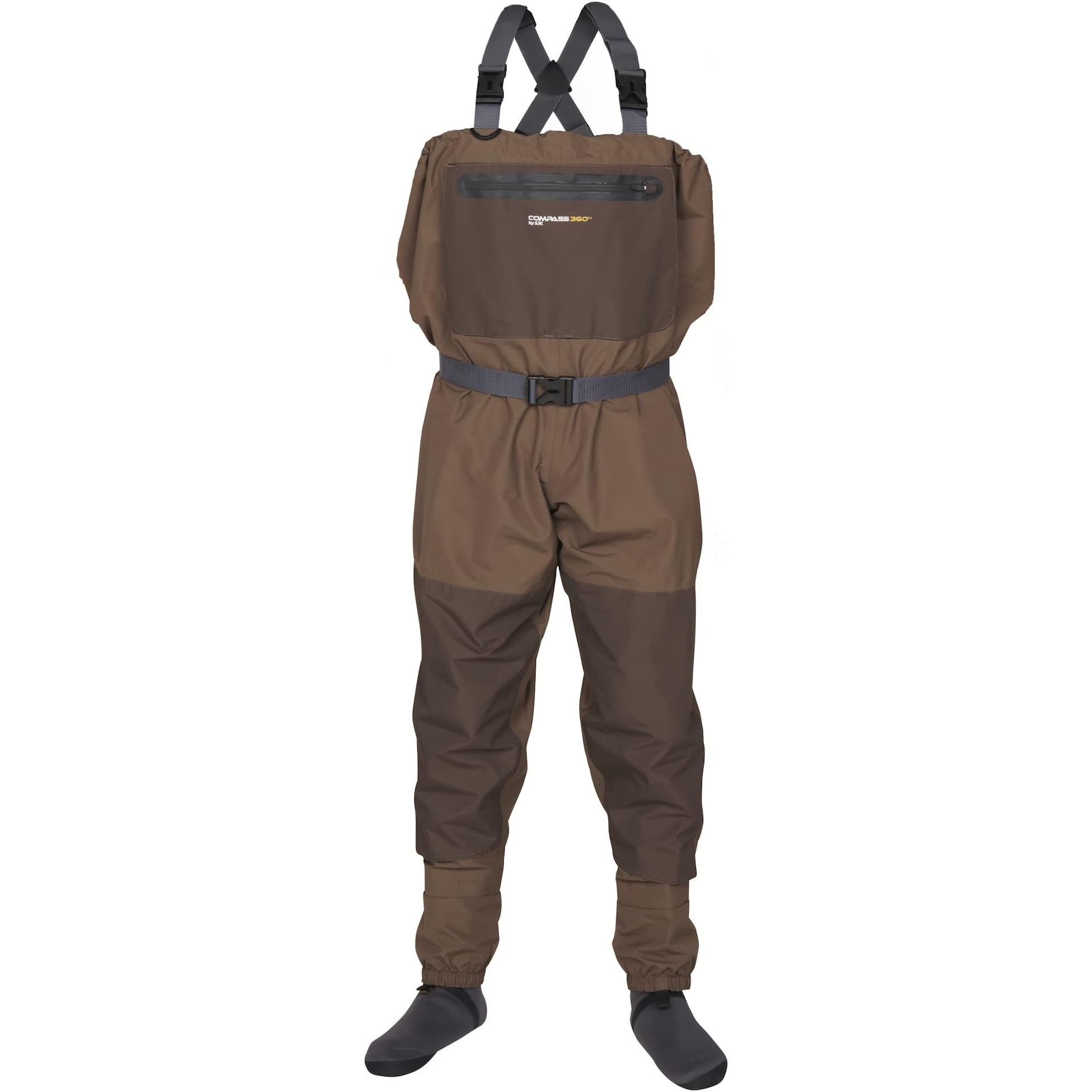 Introducing the high-performance companion for all your fishing adventures - the Compass 360 Deadfall Breathable STFT Chest Wader in Small size. Crafted with utmost precision, these waders feature attached 4-ply Nylon gravel guards that offer superior protection against rough terrains and ensure durability throughout. Designed to provide utmost comfort, they come with an adjustable web Wading belt equipped with a quick release buckle, allowing you to customize your fit effortlessly. Whether you're wading through rivers or exploring unknown waters, these waders are specially engineered to enhance your experience and keep you dry and comfortable. Elevate your fishing game with the reliability and convenience of the Compass 360 Deadfall Breathable STFT Chest Wader.